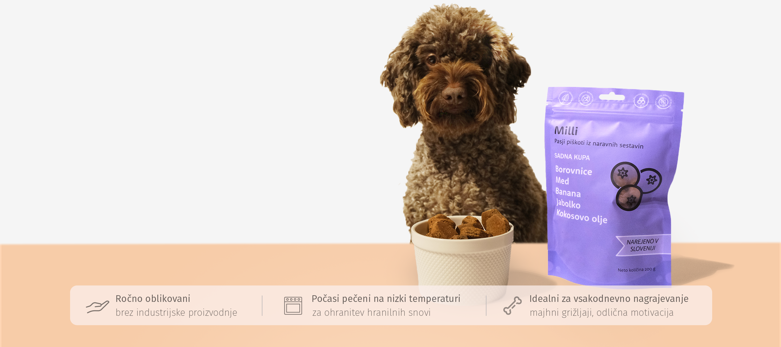 Vse se je začelo s posvojitvijo najine psičke Mile. Ko sva jo začela vzgajati, sva hitro ugotovila, kako pomembni so dobri priboljški - želela sva takšne z zdravimi sestavinami, brez umetnih arom, barvil ali konzervansov. Spontano sva jih začela peči doma in kmalu je iz tega nastala Milli: mala pasja pekarna iz Maribora. Danes piškote še vedno pečemo ročno, v majhnih serijah in iz kakovostnih sestavin.