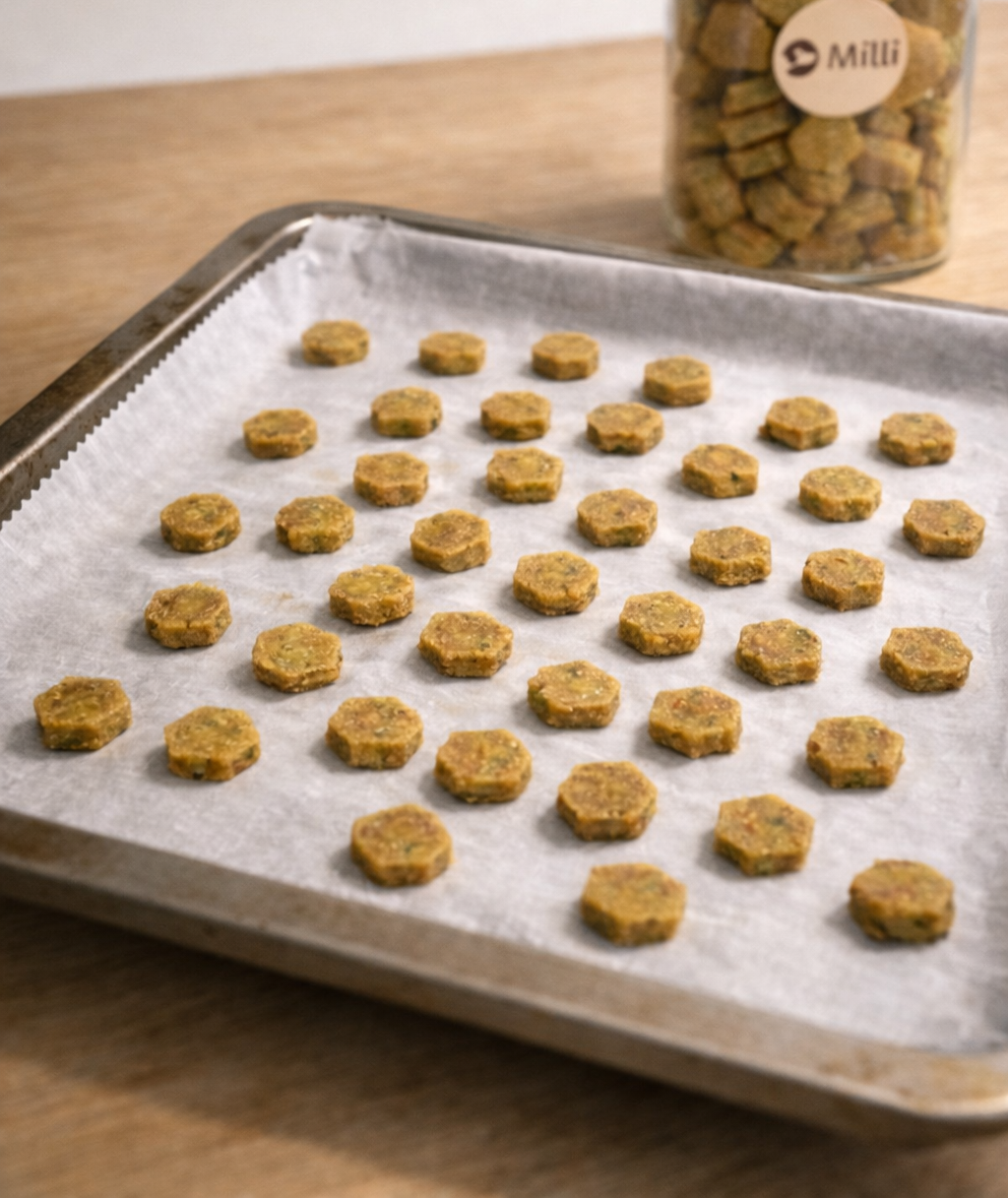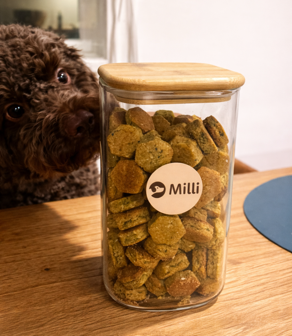 Ko so piškote začeli pokušati še kužki najinih prijateljev, je ideja postala večja od najine kuhinje. Tako je nastala Milli – mala pasja pekarna, kjer še vedno izdelujemo piškote ročno, v majhnih serijah in z enakim ciljem kot na začetku: ponuditi priboljške, ki so primerni za vsakodnevno nagrajevanje in jim lahko zaupaš.